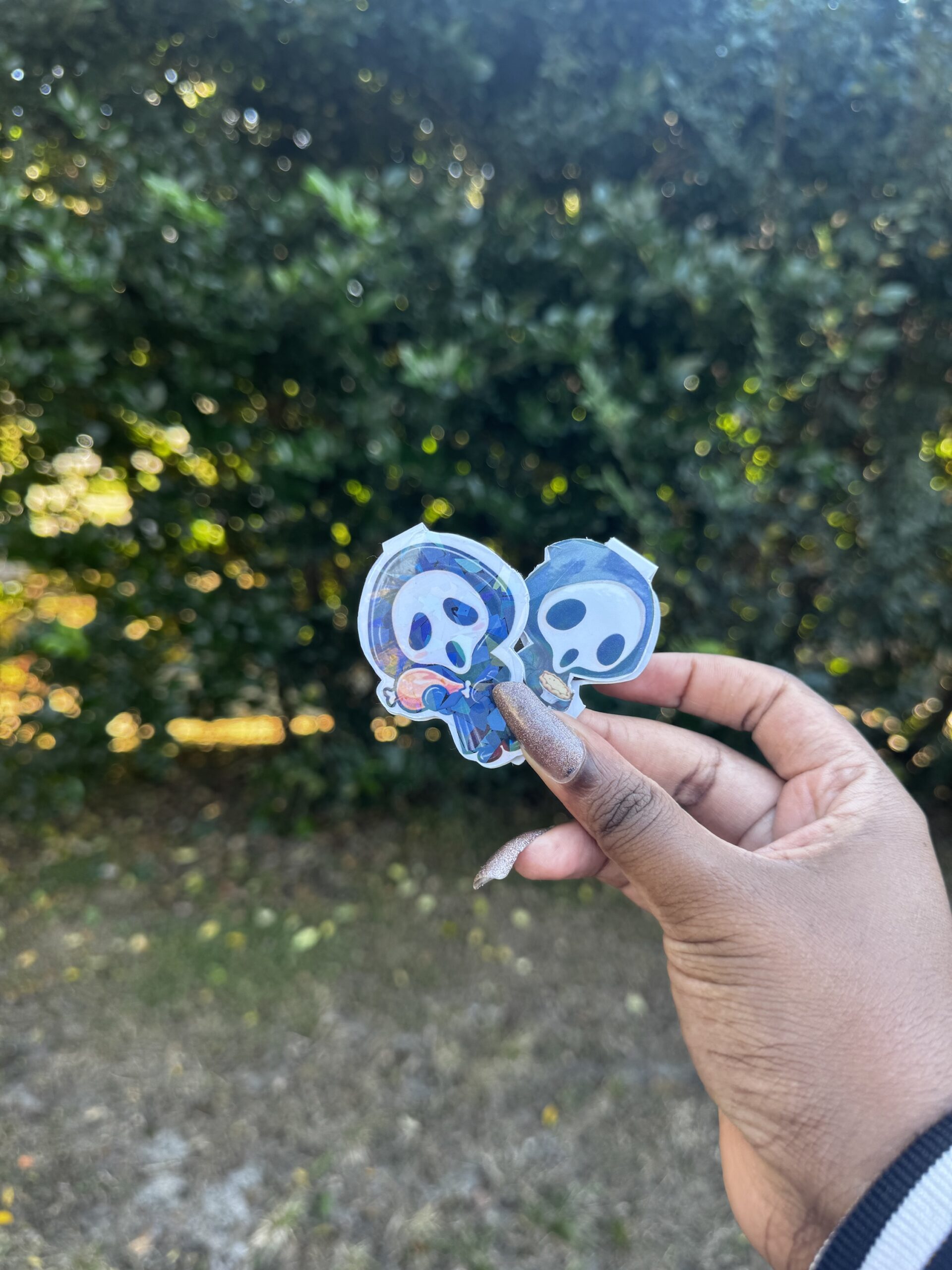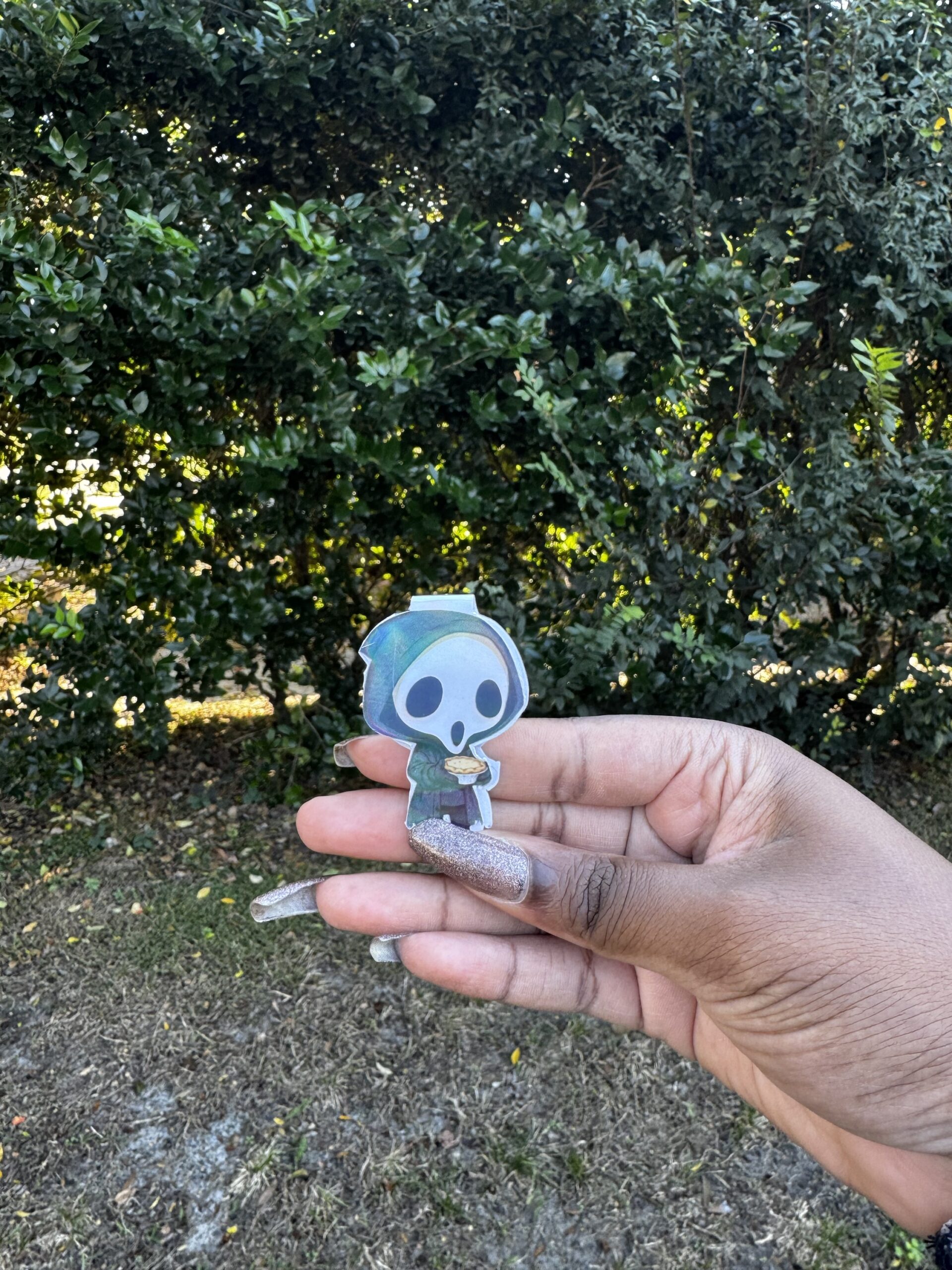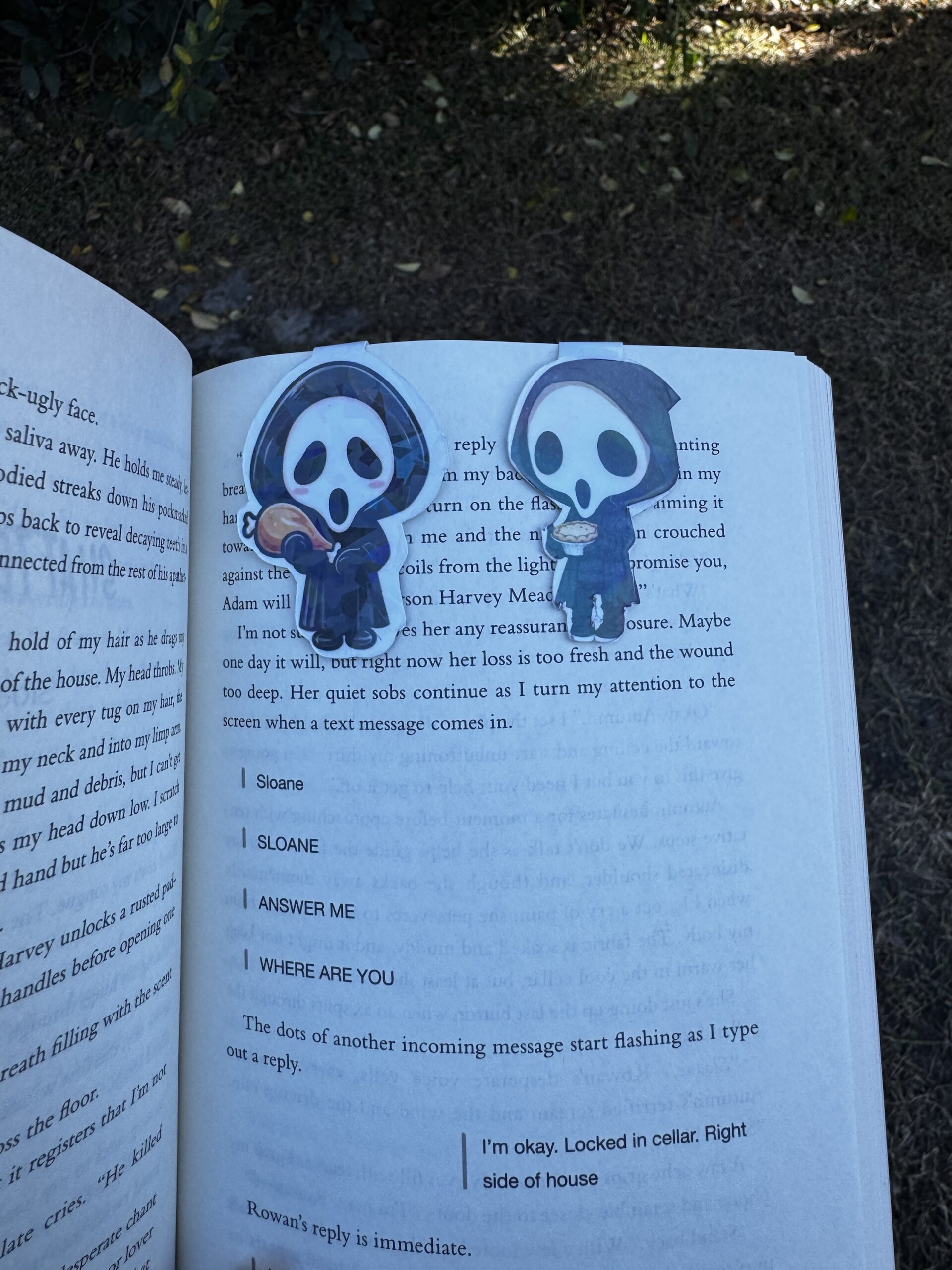 A Thanksgiving-themed magnetic bookmark featuring a mysterious masked man design. Made with strong magnets to keep your page secure without damaging your book. Lightweight, durable, and perfect for fall reading.
